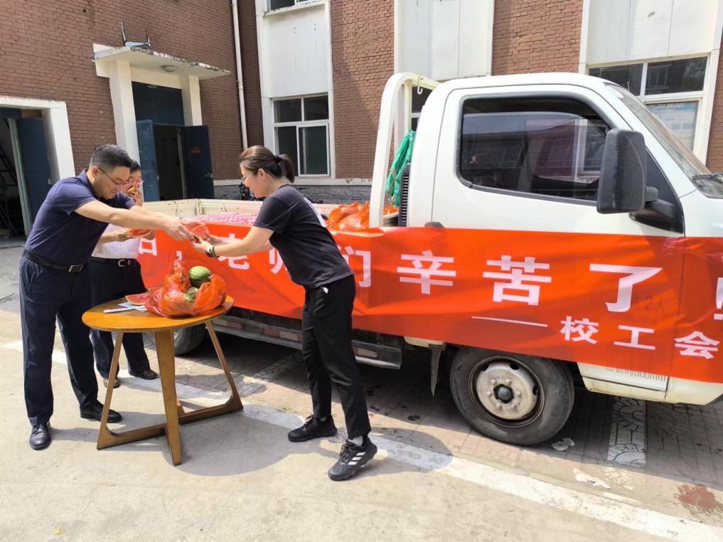 为认真贯彻落实习近平总书记视察天津重要讲话精神,深入学习贯彻习近平总书记关于工人阶级和工会工作的重要论述,落实市总工会及校党委关于夏送凉爽安全度夏工作要求,7月8日,由副校长曲志刚带队,我校开展2024年首批暑期在岗教职工“夏送凉爽”慰问活动,校工会主要负责同志陪同,为坚守岗位的教职工送上西瓜、消暑饮品等。本次慰问主要面向整体搬迁的四个学院及招生工作办公室暑期坚守岗位的教职工。 曲志刚对老师们坚守岗位、甘于奉献的劳动精神表示感谢和慰问,叮嘱大家在确保工作进度的同时,要加强防暑意识和安全意识,关注自身的健康状况,传递了学校党政领导班子对假期坚守一线岗位教职工的关心关爱。老师们纷纷对学校的关心和惦念表示感谢,表示将以更饱满的精神状态坚守岗位,有序推进各项工作高质量完成。 校工会连续多年开展“夏送凉爽”“冬送温暖”活动,及时把学校的关怀、工会组织的温暖送到广大教职工心坎上。为了做好2024年“夏送凉爽”工作,校工会改进工作方法,结合学校重点工作和实际情况,计划分批次开展暑期慰问工作。 校工会将继续坚持以教职工为中心的工作导向,切实维护教职工合法权益,努力提升教职工的获得感和幸福感,充分激励教职工建功立业的积极性主动性,为学校实施“先锋计划”,加快推进学校高质量内涵发展提供有力保障,营造良好氛围。 |